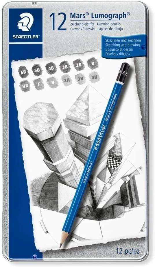 Staedtler Mars Lumograph 100 Pack de 12 Lapices de Grafito – Resistencia a la Rotura – Graduaciones Surtidas