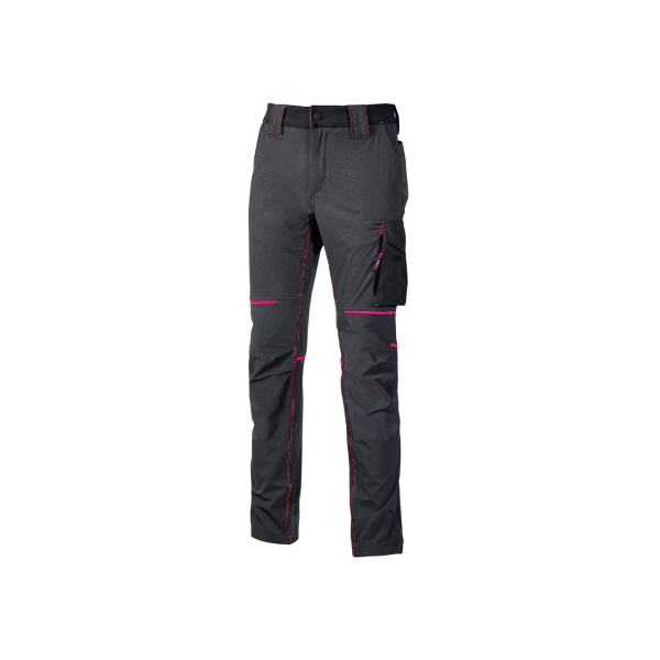 Upower World Lady Pantalon de Tejido U-4 – Talla 2XL – Resistente y Transpirable, Secado Rapido, Multiples Bolsillos Funcionales, Ajuste Retractil, Detalles Reflectantes, Proteccion DPI1 – Color Gris Fucsia